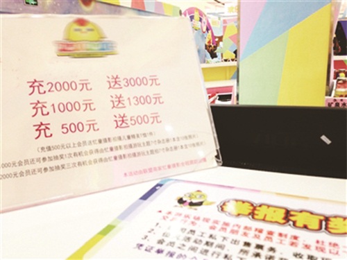 市民陈小姐说,她办了某儿童游乐场的会员卡,办卡最少得充500元,若想享受会员折扣,必须保证卡内有足够刷卡金额,若卡内金额少于当次消费金额,就不给刷了。为了折扣,陈小姐只能一次次地往卡里充钱,她说,办理会员卡简直就是一个“魔窟”,卡里的钱永远也用不完。
