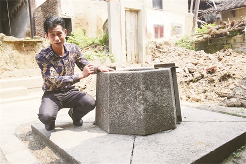 本报讯(黄水成 卢晶津 文/图)4月17日,笔者看到坂仔镇东风村长箱组下楼社一老宅院内,天井中的一个八棱井圈被角铁牢牢锁住,顿生疑惑。