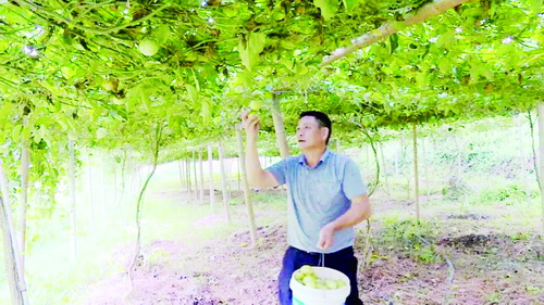 近日,记者走进果农林永裕的百香果基地,只见绿油油的藤蔓爬满棚架,一个个拳头大小的百香果从网格中间垂挂下来,果香四溢,让人垂涎欲滴。林永裕正忙着采摘成熟的百香果,脸上洋溢着丰收的喜悦:“一共种植了40余亩,总产量有10万多斤,扣去本钱以后能赚七八十万。”为了提高百香果品质,林永裕进行科学管理,采用土壤改良技术和高新有机肥料栽培,种植出来的百香果个头饱满、味美汁润,经济效益好。