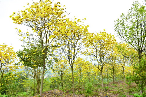当地村民告诉记者,这片黄花风铃木是在2010年种植,面积达23亩,共100多株。于今年1月底开花,花期还将持续1个月。⊙张伟芳 王志晖 杨志平 林弋翔