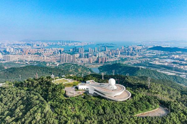 蔡尖尾山主峰海拔382米,位于这里的天语舟气象公园,是厦门的网红打卡点。公园因有新一代天气雷达阵地“天语舟”而得名,从空中俯瞰“天语舟”,好似一艘自天外驾云渡水而来的航船。